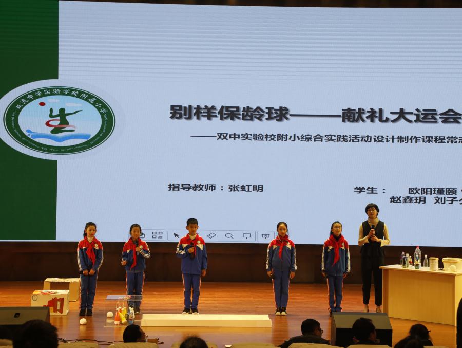综合实践活动成果展示部分,分别展示了成都市第二届综合实践活动成果展评一等奖项目,双流中学实验学校附小张虹明老师指导的课题《趣味保龄球》进行体育器材设计制作,创意十足,让与会老师赞叹不已。双流中学实验学校初中部方艳秋老师指导学生进行《阳台土培与水培种植实验探究》,整个课题的开展注重在潜移默化中向学生传递科学探究的方法,培养科学素养,培养对学生发现问题,解决问题的能力。