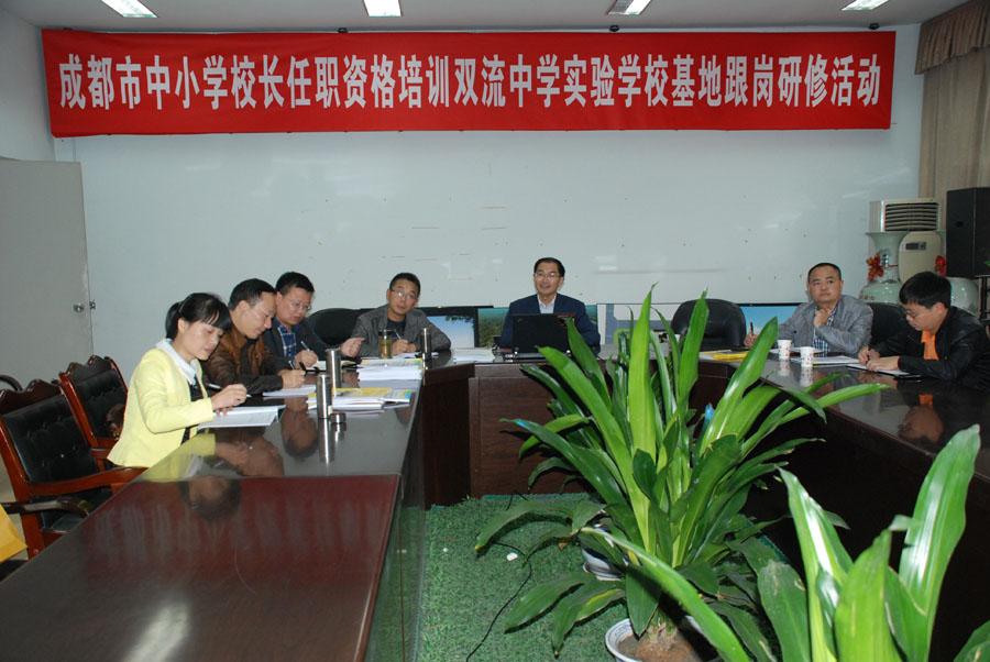 2014年10月29日,成都市2014年度中学校长任职资格培训班周再勇等七名学员到双流中学实验学校跟岗培训,认真学习了该校的校本课程建设及校本研修工作。