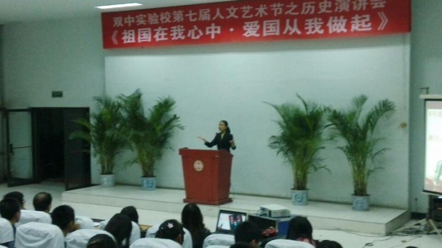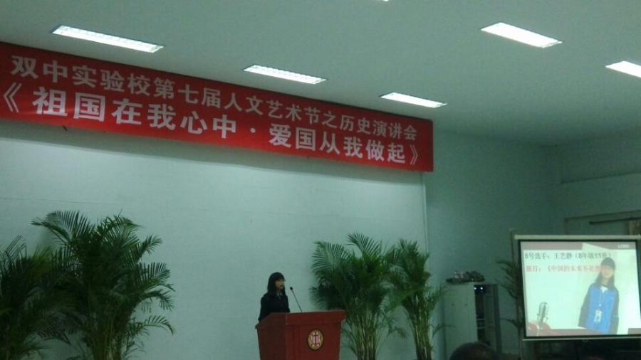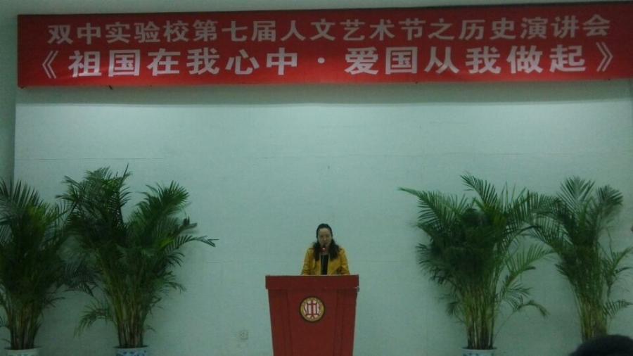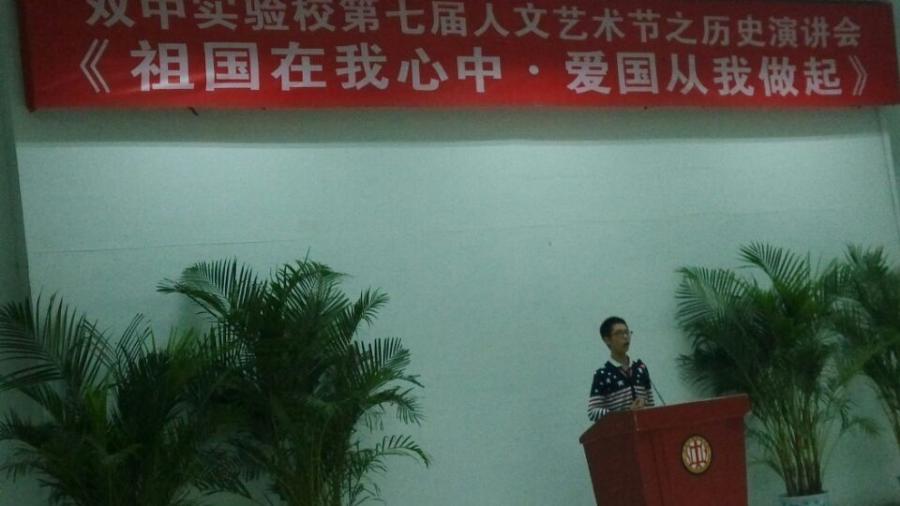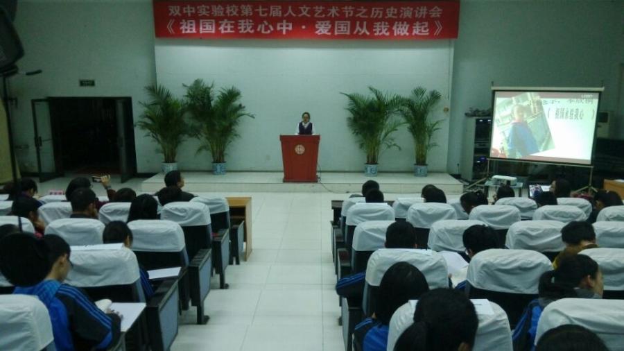 11月5日晚7时许,由历史组承办的双流中学实验学校第七届人文艺术节之《祖国在我心中 爱国从我做起》演讲会在学术演讲厅顺利落下帷幕。