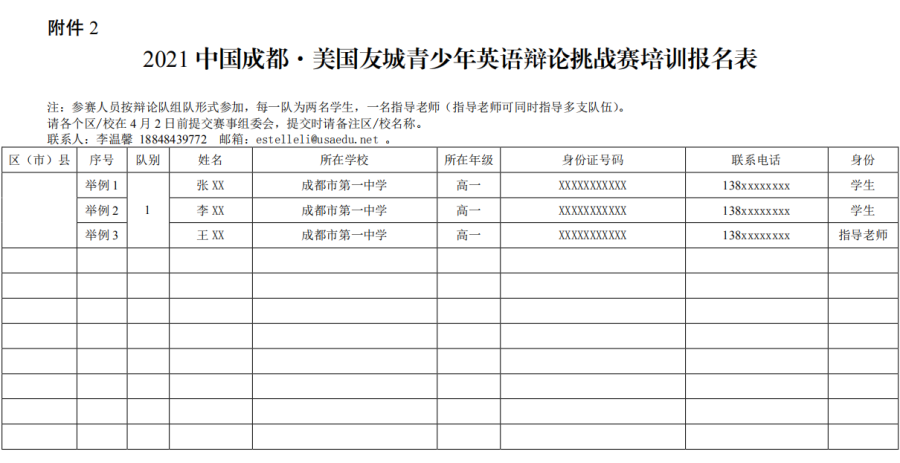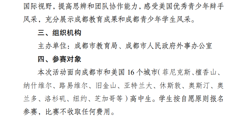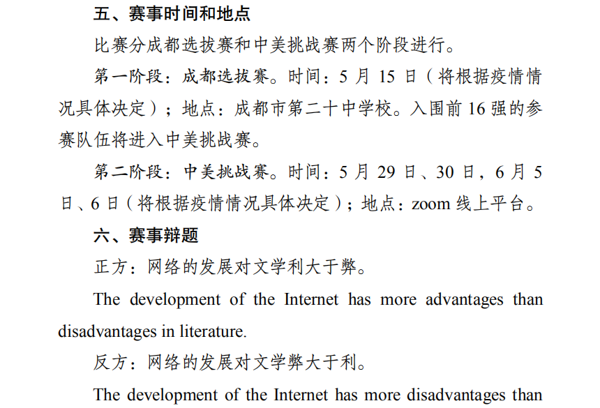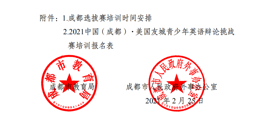 关于举办 2021 中国(成都)·美国友城 青少年英语辩论挑战赛的通知