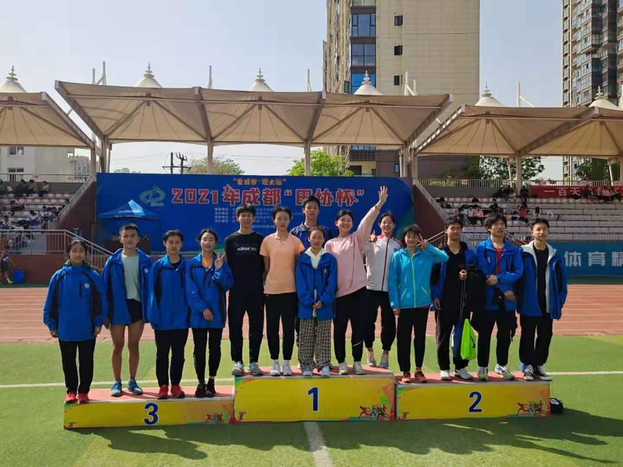在比赛中,我校队员顽强拼搏、奋勇争先,以团体总分413分的好成绩获得成都市第一名,共获得15枚金牌、6枚银牌、7枚铜牌。其中,我校高一年级的白冉筱同学在女子甲组400米跑比赛中,以“56秒24”的个人最好成绩获得女子甲组第一名,打破赛会纪录、并获得国家一级运动员的光荣称号,这也是我校田径队自组建以来第三位获得国家一级运动员称号的在校学生。对我校田径队取得如此优异的成绩表示祝贺,希望田径队师生们能继续发扬“不怕苦、不怕累”的精神,为学校争取更多荣誉。