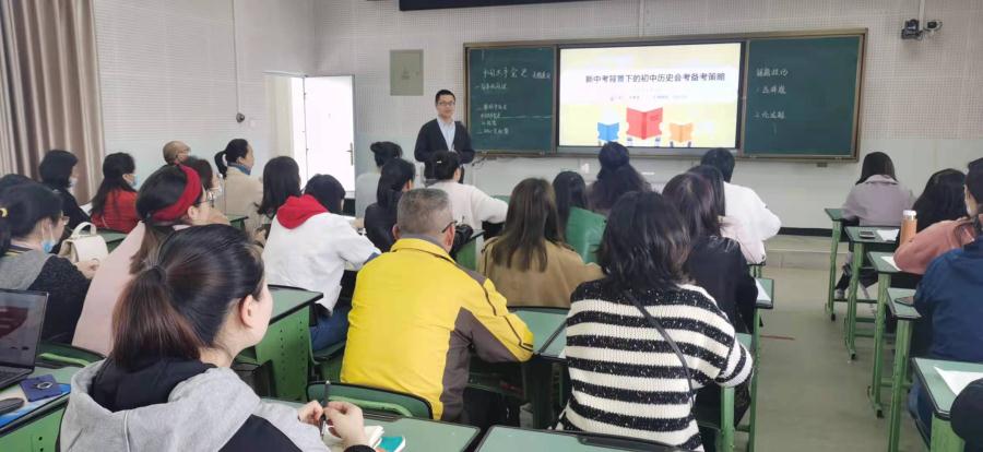 课后,历史组范勇波老师做“新中考背景下初三历史复习策略”的专题讲座。范老师分析了今年中考面临的新问题,梳理了近三年成都市中考的试题,总结了近三年中考的规律和关键考点,展示了本年度的考试热点,汇报了我校初三历史复习的基本模式。