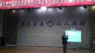 2013年12月18日中午,双流中学实验学校文创班的10位同学在何向,彭熙,杨雪梅三位老师的带领下,在棠湖小学参加了“中华人文之星推举活动暨四川中小学生诵读演讲大赛”。
