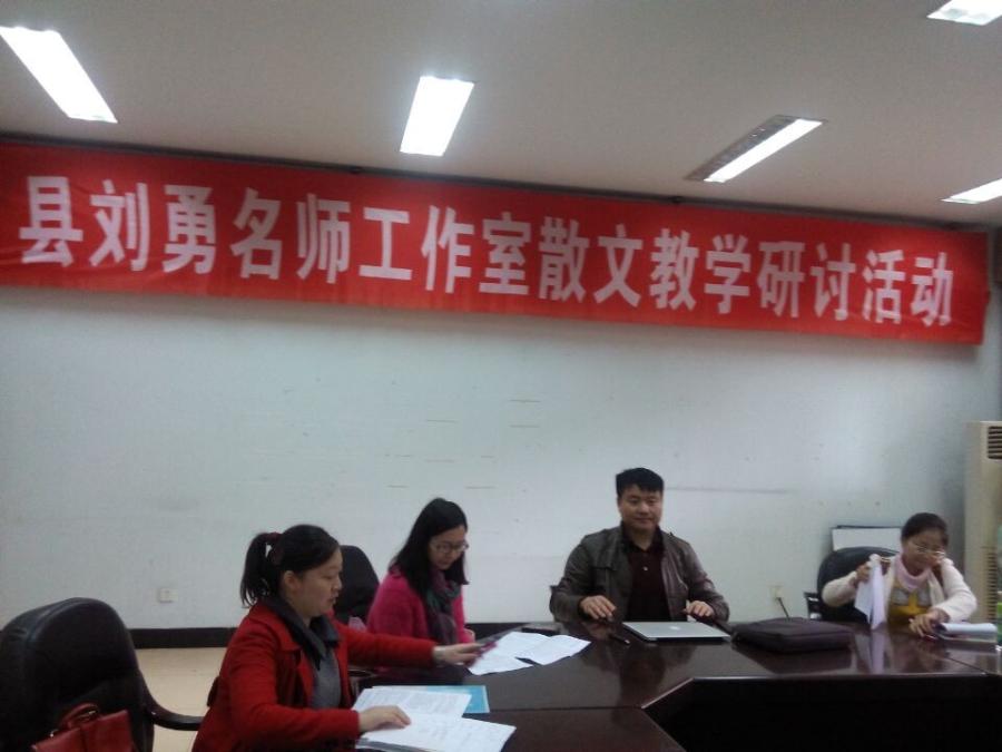 2014年11月13日上午第四节课,县刘勇名师工作室散文教学研讨会在三会议室召开。参会人员有刘勇老师带领的名师工作室成员和我校部分语文老师。会议由刘瑛老师主持。