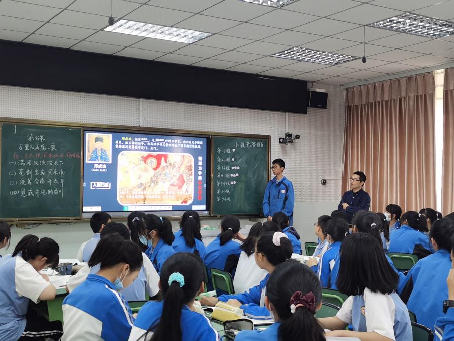 “众人拾柴火焰高”,全组的群策群力促进了课题化背景下教学实践有效推进。范老师充分利用小组合作学习的理念,对小组合作进行了合理的分工,采取小组竞答的方式充分调动了学生学习的积极性,课堂学习的氛围自然融洽,学习效率较高;充分挖掘教材,抓住关键人物“康熙”,以健全人格意识板块中的“果敢性”构筑本课课魂,以大量的史实引导学生在面临危难时所应持的“人生观”,有效育养了学生的人格。