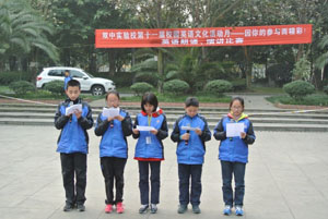 金秋送爽,桂花飘香。随着我校七年级学生慷慨激昂的朗诵,一年一度的英语活动月于2013年11月17日正式拉开帷幕。本次活动月将从2013年11月17日进行到12月20日。本届活动月内容丰富,有英语演讲(朗诵)比赛、英语歌曲合唱(独唱)比赛、英语短剧表演比赛、英语动画片配音比赛、优秀英语主持人评选、校园英语slogan创作评比、英语晚会等一系列精彩的活动。本届英语活动月将以英语教学活动为载体,针对目前学生的英语学习情况,紧密结合常规教学,将全面提升学生的语言运用能力和参与意识,活跃英语学习氛围,丰富师生校园文化生活,激发学生对英语的兴趣,展示我校学生的英语才能。
