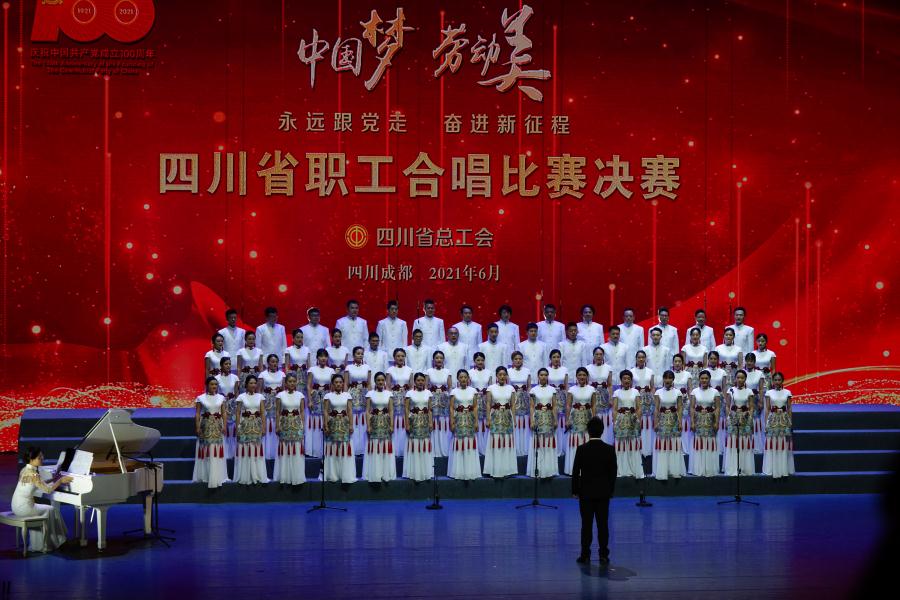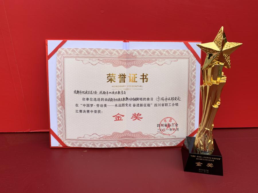 “中国梦·劳动美——永远跟党走 奋进新征程”四川省职工合唱比赛是全省“永远跟党走”群众性主题宣传教育活动之一,是全省职工庆祝庆祝中国共产党成立100周年的重要活动。据了解,四川省职工合唱比赛于今年3月正式启动,分为选拔赛、片区赛和决赛三个阶段。经过激烈角逐,最终12个市(州)总工会,省产业(局)、企业集团(公司)工会选送的,来自电力、交通运输、建设建筑、能源、生态环境、媒体、机关事业单位、保安、房屋中介等行业的13支队伍、971名职工进入了决赛。本次决赛现场评出金奖2名、银奖4名、铜奖7名,优秀组织奖15名。我校夏栋梁、吴玲、张静、李意四名教师受邀参加区级组队,其中夏栋梁老师为合唱团指挥,吴玲、张静老师担任参赛作品领唱,在比赛中我校教师扮演了重要的角色,出色的完成了合唱团各项任务,促成了初赛、复赛、半决赛、决赛中的出色发挥,再次向社会展现了名校名师风采!( 图文来自:夏栋梁)