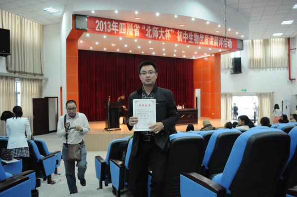 经过各县、市的层层筛选,最终来自四川省成都市、遂宁市、巴中市等地21位初中生物教师参加了本次大赛决赛。我校优秀青年教师龙姿君最终荣获大赛一等奖。龙姿君老师执教的“北师大版”生物教材七年级上册第五章第3节《吸收作用》中的一节活动内容《探究植物细胞吸水和失水》,他以我校主研的市级课题《自主合作探究式课堂教学模式构建研究》之子课题《初中生物实验探究式课堂教学模式》研究成果进行课堂教学设计,教学环节层层紧扣,优质高效的完成了教学目标。课堂上其扎实的教学功底、独特的教学设计、灵活的现场反应以及简洁明了的教学语言获得了专家的一致好评。