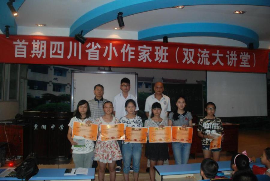 20日,由四川省青少年作家协会主办的为期5天的首届四川省首届小作家班在棠湖中学成功落幕。在100余名学员羡慕的眼神和热烈的掌声中,我校徐爱玲、田苡然等7名学员走上领奖台,接过了作家们颁发的“2014年度四川省百佳小作家”证书。