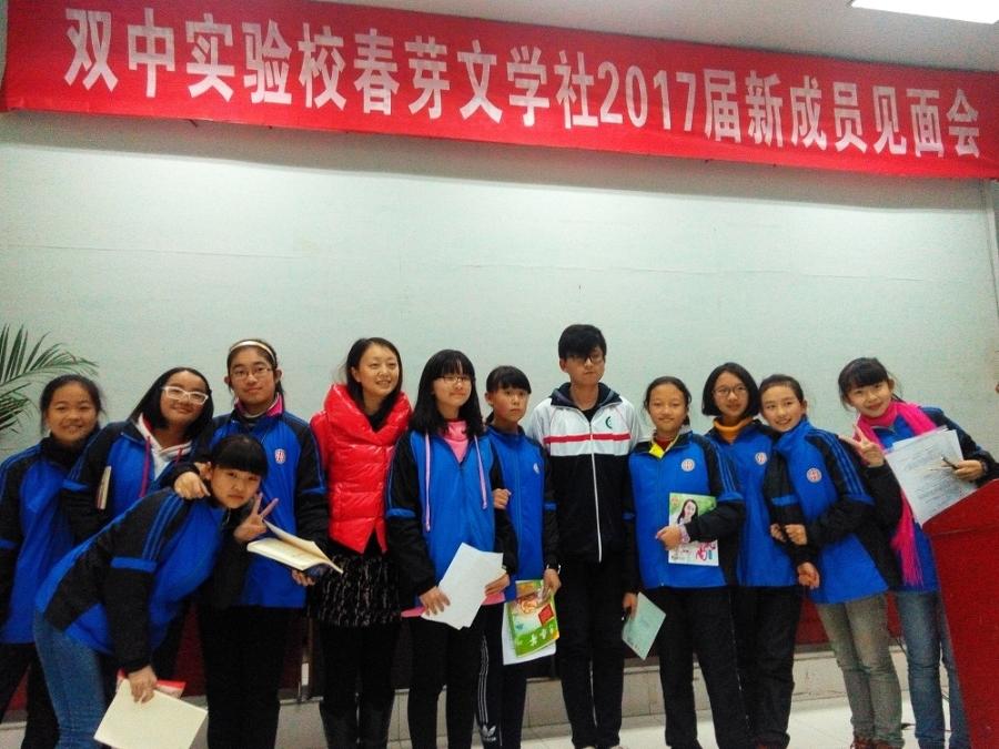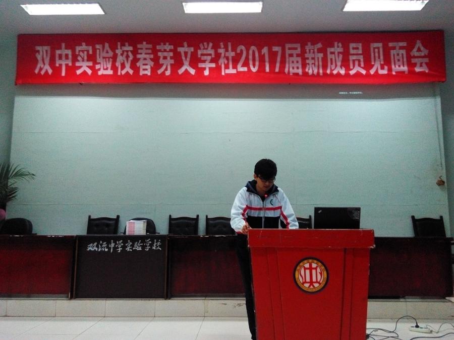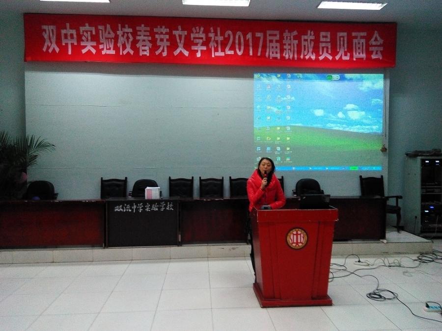 2014年11月19日第二节晚自习,我校《春芽》文学社在学术厅举办2017届新成员见面会。《春芽》文学社荣誉社长——万亿、相关指导老师和2017届新成员到会参加活动。