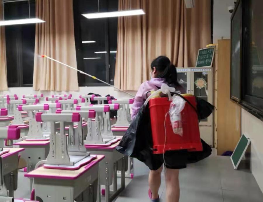 在消毒过程中严格遵守卫生消杀标准规范操作,对学校的校园设施、教室、洗手池、厕所、办公室等公共区域进行消毒消杀,全面切断校园疫情传播源,确保校园安全。