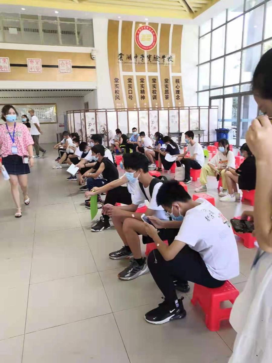 2021年8月13日,接种学生统一乘车前往棠湖中学实验学校接种点,在棠湖中学实验学校门口先经体温检测,由现场医务人员对接种学生的身体情况进行问诊、评估,告知疫苗接种禁忌以及提醒接种后注意事项,并在登记姓名和身份信息后,正式开展疫苗接种并留观30分钟。