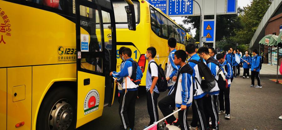10月16日上午,我校八年级全体学生在行政领导陈国华主任、跨学科综合课题组成员、班主任、指导老师和带队老师的带领下有序乘坐大巴车前往黄龙溪景区,开展疫情后的第一次大型外出综合实践活动——走进黄龙溪。