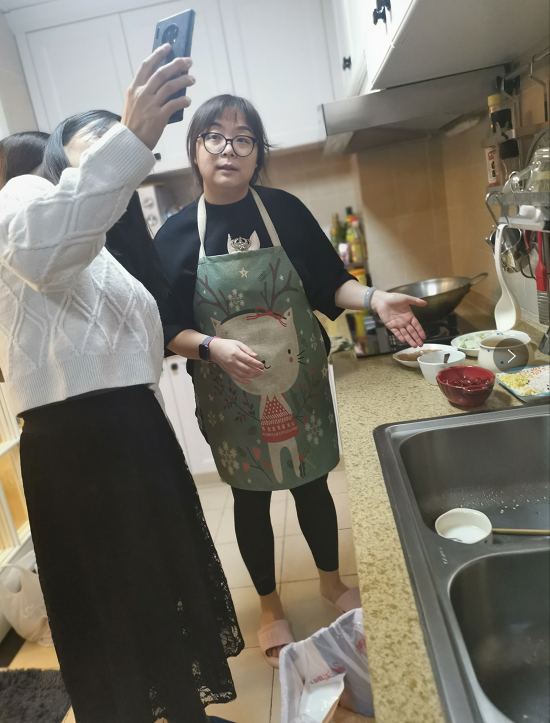 接下来的时间里,李主任手把手熟练地带着同学们制作宫保鸡丁,从材料的准备,切鸡肉快、葱、姜、蒜、干辣椒,到酱汁的调配,每一个步骤都耐心地为同学们讲解。其中韩志杰同学没有办法拿捏“一点点”到底是多少,这时候,李主任马上拿出两把不一样的勺子,并依次放在手心进行比对,帮助同学们通过利用勺子进行调料的添加,并用厨房秤演示了应该准备的100克油。直到所有同学们都准备好了材料。姚瑶老师再次帮助大家复习了宫保鸡丁的炒制步骤。然后,李主任顺势带着所有同学们进行了最重要的翻炒步骤,看着一道道材料的下锅,翻炒时飘来的香味,同学们都热情高涨,直到最后起锅分享时,大家都经不住品尝起来,有的连连称赞“太好吃,我喜欢”,有的大呼“有点辣”,有的自信地和家人分享,有的和老师继续探讨如何能做得更好...老师们都为同学们今天的表现点赞,也期待未来的日子里,同学们能和川菜再续前缘。