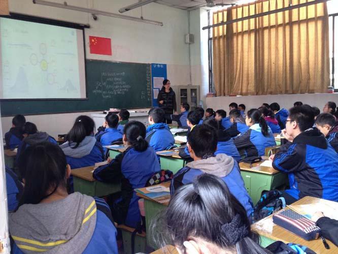 钟英老师作为地理组骨干教师,课堂目标清晰,她由一段视频引导学生认识河流的功能为开场,配上清晰的文字说明,极大感染了学生的情绪,接着再通过展示长江的源头入海口自然引出本节课主题;环节一——概念大普及,通过动画准确演示“干流”“支流”“流域”夺得在场领导和老师的一致赞扬;环节二——神笔马良画一画,帮助学生描中国几大河流,引导学生找差异,帮助学生分辨外流河、内流河,得出结论:中国是以外流河为主,并邀请同学上台为大家指出外流河,一度将课堂气氛推入高潮;最后通过小组活动研究不同外流河水文特征,并延伸出世界开凿最早也是最长的人工河——京杭大运河。