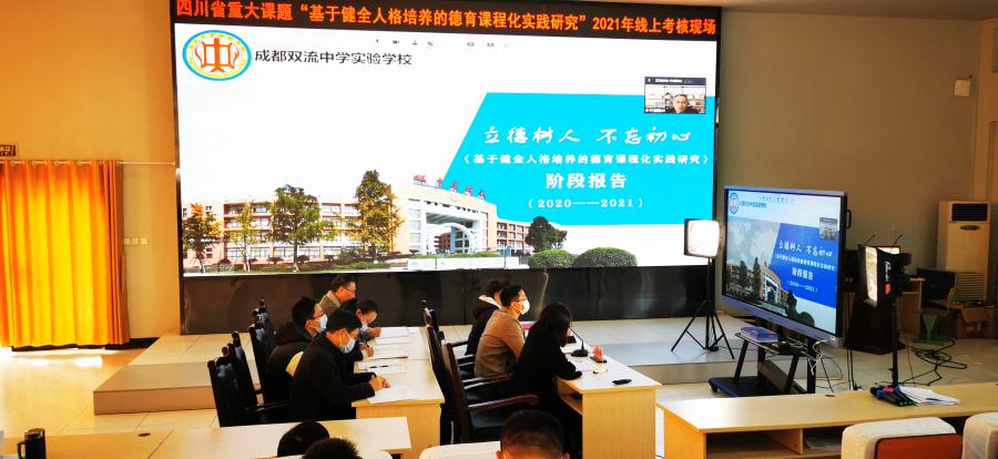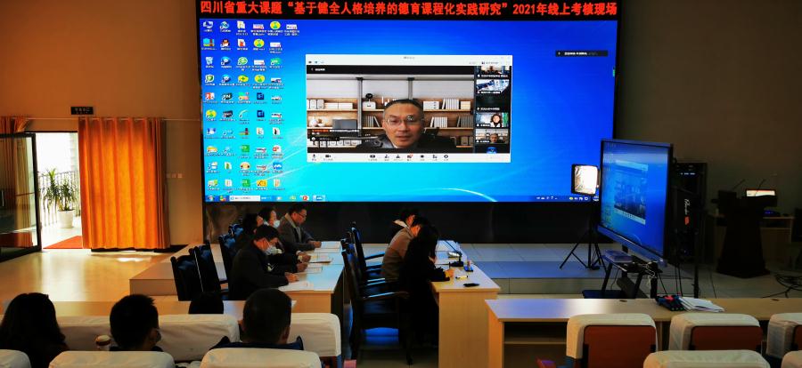 2021年11月17日上午10:00,我校承担的 2019年度四川省重大教育科研课题《基于健全人格培养的德育课程化实践研究》课题组在学校学术报告厅进行了线上阶段评审汇报。学校教科室文传福主任、德育处王敏蓉主任和课题组的全体成员参加本次了评审。为此次课题阶段汇报做点评和指导的专家是四川省教育科学研究院科研管理所王霞副主任和青羊区教育科学研究院叶剑副院长。