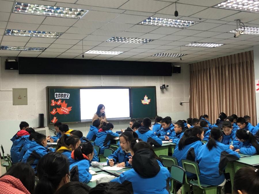 在评课环节,老师们纷纷给出自己的积极评价:这是一堂情感美、语言美、画面美、音乐美的引人入胜的生命课程;情景的创设从生活中来,又高于生活;本堂课让同学们感受到了生命的长度、宽度、厚度;对七年级第四单元进行了成功的大单元整合,逻辑和理论关系顺理成章,每一篇章循序渐进,不断升入,让学生对生命从认识到思考到反思再到行动,是一个从感受到实践的过程。