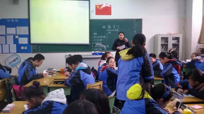 第十四周周一下午第二节课,八年级数学组人人献课活动在八年级六班举行,由罗霞老师上课,上课内容为校内活动课《班徽设计实施指导课》。高校长、刘主任、周主任、全组数学老师参与了听课,刘主任和全组数学教师参与了评课。