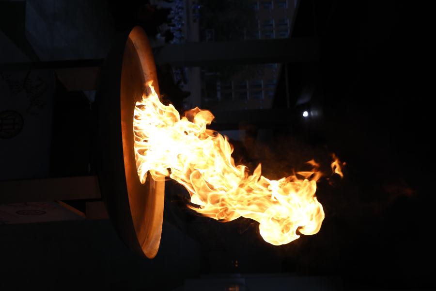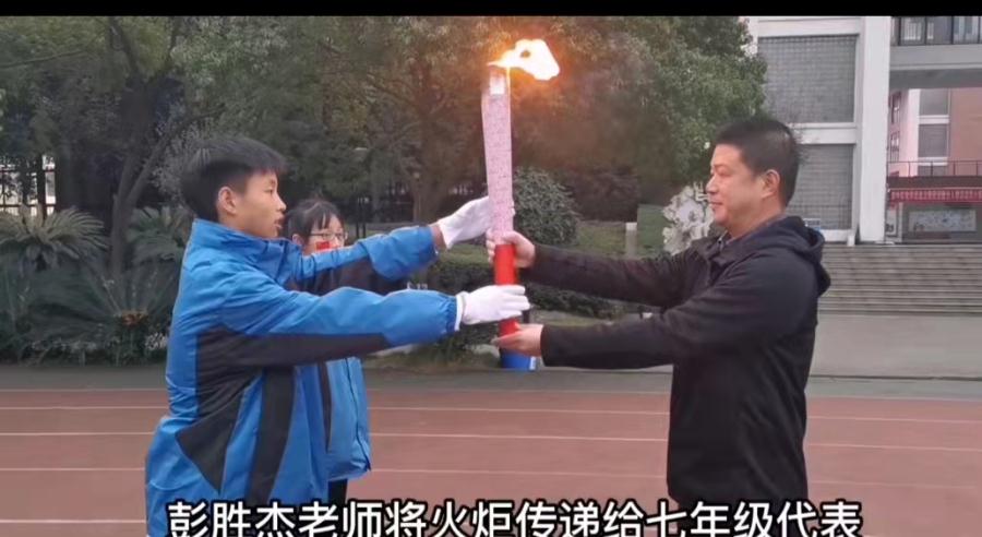 火炬,象征着光明、团结、友谊、和平、正义,代表着奥林匹克精神,运动会火炬传递成为隆冬时节一抹亮丽的风景,经过高初中各年级和教师代表的不懈的接力,最后高校长为我们点燃了象征青春、活力、梦想的运动之火,之后运动会正式开始。