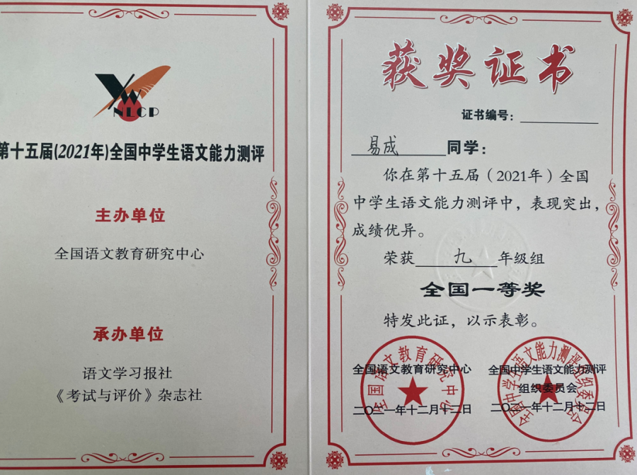 语文是“桃之夭夭,灼灼其华”的《诗经》,是魂兮归来的《楚辞》,是忍辱负重的《史记》,是千古绝唱的《离骚》……语文是美丽的,它使我们开阔了眼界,提升了境界。为培养学生热爱祖国语言文字的感情,丰富校园文化气氛,提高学生的语文素养,增进学生学习语文的兴趣,我校于2021年11月18日组织学生参加了“第十五届全国中学生语文能力竞赛”,并取得累累硕果。其中,15名同学获得国家级一等奖,46名同学获得国家级二等奖,91名同学获得国家级三等奖,31名同学获得省级一等奖,91名同学获得省级二等奖,183名同学获得省级三等奖。