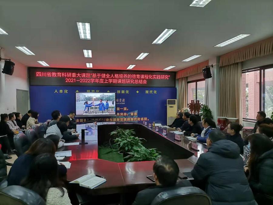 2022年1月15日上午,四川省重大科研课题“基于健全人格培养的德育课程化实践研究”阶段总结会在双流中学实验学校第三会议室隆重召开。高志文校长、田志明副校长、课题组王敏蓉主任、教科室文传福主任和初中部、小学部、附属幼儿园、荣汇幼儿园相关课题组成员参加了本次会议。