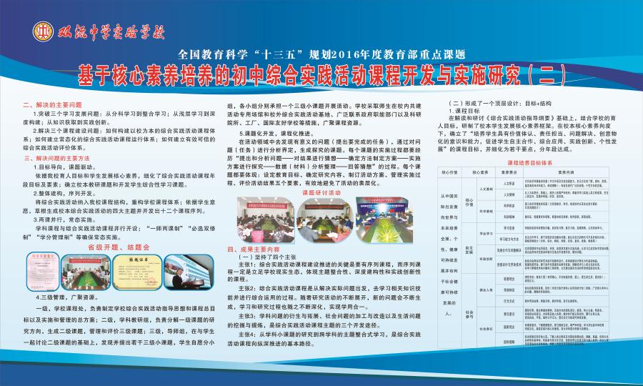 全国教育科学“十三五”教育部重点课题“基于核心素养培养的初中综合实践活动课程开发与实施研究”简介