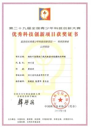 日前获悉,从我校科创班毕业的原2013届12班学生席浩洲在2014年8月第29届全国青少年科技创新大赛上,所发明的项目《相机可拓展快门线及配套功能模块的研制》一举斩获殊荣,评为国家级一等奖,并获得清华大学拔尖计划资格。进入高中学习后,席浩洲同学继续他的研究之路,先后有多篇论文在国家级刊物发表并获奖。在2014年4月第29届四川省青少年科技创新大赛中荣获四川省科协主席奖;在2014年5月四川省第10届宋庆龄少年儿童科技创新奖评选活动中荣获高中组发明类一等奖。 在我校学习期间,他积极参加学校每年一届的科技节,表现突出,成绩显著,在2013年4月学校举办的航模比赛中获得校一等奖,并被学校推荐参加成都市2013年航模大赛,成绩优异,获得成都市一等奖。该同学平时学习中,有很强的好奇心和钻研精神,经常出入学校的各学科实验室,在2013年全国初中物理竞赛中获国家级一等奖。(蔡平)