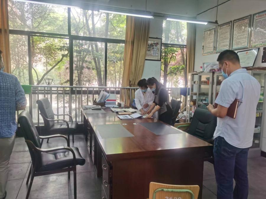 检查组一行先后在门卫室仔细查看门出入登记记录本、门口留观室、体温检测流程。然后进校查看核酸抽检现场、医务室查看因病缺勤追踪登记本和体温检测表,了解在校学生发热、就诊、核酸检测等方面的情况。