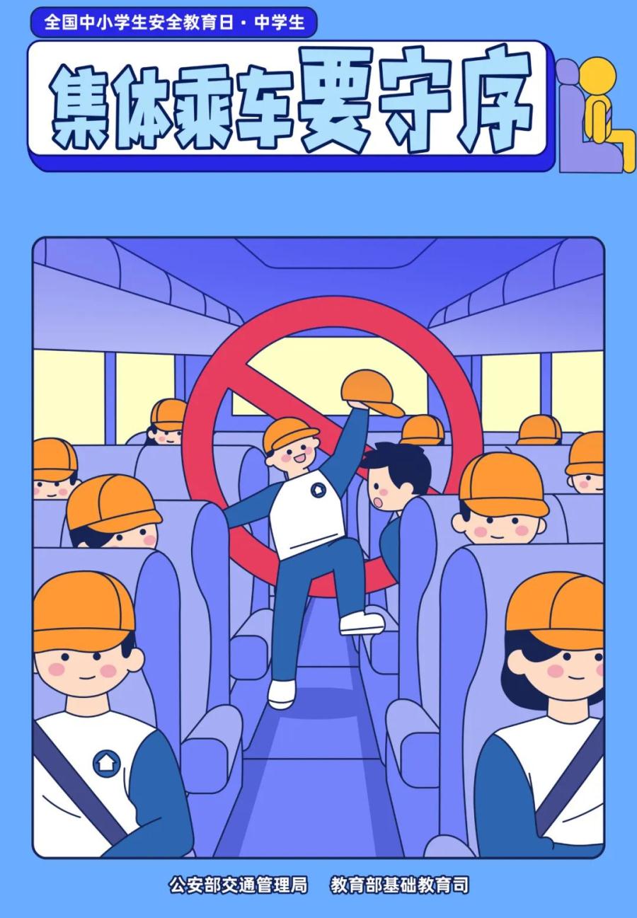 中小学生交通安全是全社会关注的大事!在全国中小学生安全教育日来临之际,公安部交通管理局联合教育部基础教育司策划制作了两套海报,分别面向小学生和中学生,旨在提醒广大中小学生、少年儿童,无论是步行、候车、乘车还是骑车,都要时刻注意遵守交通法规,提高自我保护意识。接下来一起看图学安全知识吧!