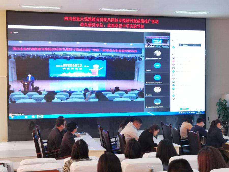 为进一步推广基于“德育课程”教育科研共同体的省级重大科研课题阶段成果,4月21日,四川省重大课题德育科研共同体专题研讨暨成果推广活动在富顺县安和实验学校举行。活动由四川省教育科学研究院、富顺县教育和体育局主办,成都双流中学实验学校、富顺县安和实验学校承办,成都七中育才学校汇源校区、成都市新都区机关幼儿园、四川省汉源县第一中学、雅安市宝兴县硗碛藏族九年一贯制学校协办。我校健全人格课题组全体教师参加了此次线上课题研究交流会。