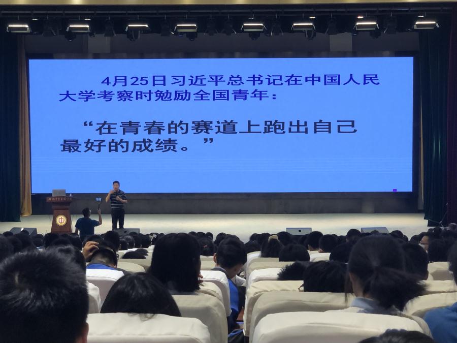 陈教授首先用习近平总书记在4月25日中国人民大学考察是勉励全国青年的话“在青春的赛道上跑出自己最好的成绩”,激励全体九年级同学为自己的梦想坚持砥砺前行。随后,陈教授运动用多种方式引导大家以积极的心态迎接中考的考验。陈教授利用自己所经历的个案现身说法,同时为了了解同学们的真实心理状态,陈教授还在现场对一些同学进行了现场采访,并进行了相应的辅导。现在气氛非常活跃,同学们都很踊跃地发言,说出自己的感受和困惑。最后陈教授对同学们现在的状况做了更进一步的心理分析并有针对性的给出了培养积极心态的原则和方法去争取中考的最后胜利。