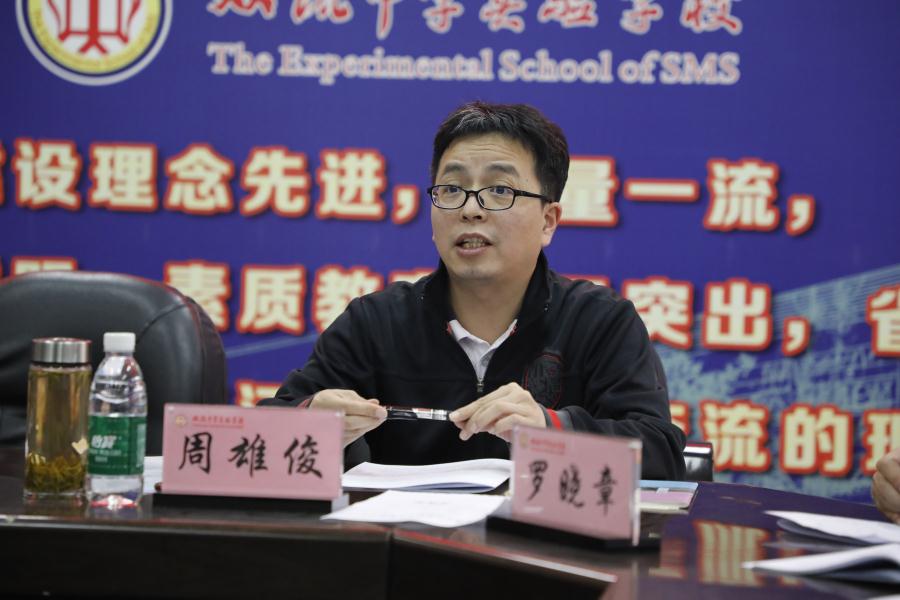 周雄俊教授对课题研究进行指导,首先他对牟老师的展示课进行了点评,并指出我校课题选题好,学校有良好的科研基础。强调智慧课堂应该更加注重反馈的及时性;在自主学习中应该注重学生学习的差异性,有针对性地安排教学内容;在传统合作中加入管理手段,让每个同学都有参与感,建立有效的竞争、反馈、评分的机制。周教授从研究目标、研究内容、自主合作探究优化等方面进行了指导,强调智慧课堂要构建个性化、智能化、数字化的课堂学习环境,创新是本研究的核心,通过研究,要对原有教学模式进行优化和改进,教授对课题研究进行具体指导。郭斌主任通过网络连线进行了指导,强调课题应促进学生自主发展和教师专业化成长,要注重激发学生的积极性,需要明确创新点,明确课堂教学存在的问题与智慧课堂的关系,明确教学改革中智慧课堂的关键作用。课题组要将教学技术的发展与人的发展结合起来,期待课题组能结出硕果!