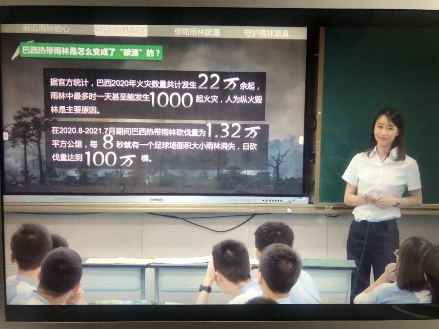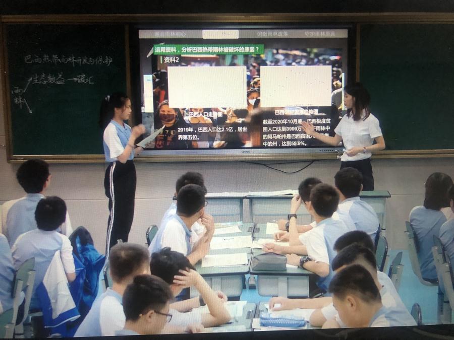 为全面把握义务教育地理课程方案和课程标准(2022版)性质、理念、目标、内容、学业质量、课程实施,4月19日,由四川省教育科学研究院主办的四川省指向深度学习的问题式教学网络教研活动(初中地理)在钉钉平台开展。我校地理组丁翔老师执教的《巴西热带雨林的开发与保护》示范研讨课大获好评。