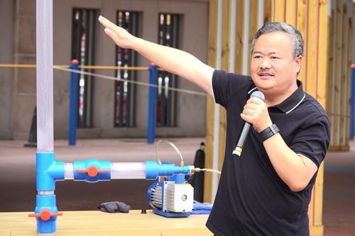 点燃活动激情的第一道炬火,由成都市双流区立格实验学校高志文校长高举,他以简明生动的语言介绍托里拆利实验活动的科学原理,同时操作实验设备,在全校师生的惊叹连连中,蓝色的水柱直冲云天,这也预示着我们立格学子必将青出于蓝而胜于蓝,更上一层楼!