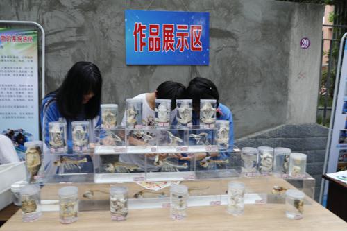 学科应用类项目——“小鸡无壳孵化”和“细胞模型展”,帮助我们去见证透明的生命起源;“阳光生态园”与“生态瓶作品展”,带领我们去探索微观生命的历程;“从比较解剖看生物系统进化”指引我们观摩生命的曲折历险;“数学折纸艺术”“数学小报作品展”与我们一同在数学的世界遨游科学的美丽;“班徽设计”、“科学小实验”展示出我校学子的创新能力;“天文望远镜”、 “天体模型” “气象观测仪器”则把我们拉回浩瀚渺远的星辰宇宙……