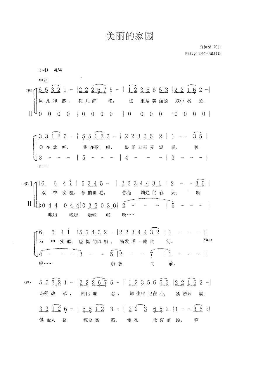 据双流县教育局发布的《校(园)歌评奖情况通报》显示,我校选送的原创合唱歌曲《美丽的家园》喜获双流县一等奖,我校是全县唯一获此殊荣的初中学校!该歌曲同时被评为“十佳词曲创作”!