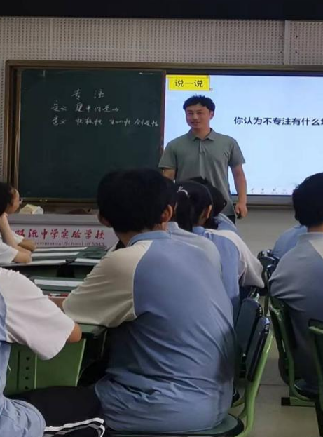 贺永谦老师的班会课主题是专注力。整节课从专注力的理解,缺乏专注力的原因、危害,解决办法,最后到学生收获,层层展开,步步递进,最大的亮点是贺老师用5个不同的案例,引导学生找到5种应对专注力缺乏的办法:学会拒绝,抵抗诱惑,明确目标,积极暗示和掌握正确方法。