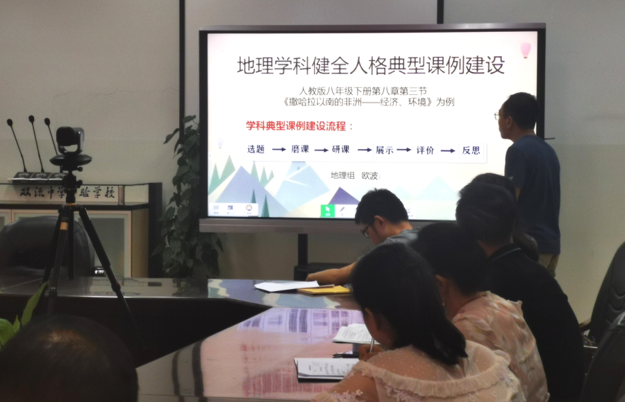 各组就本期课题研究工作的开展进行了全面的总结。其中语文、地理教研组进行了现场交流分享。