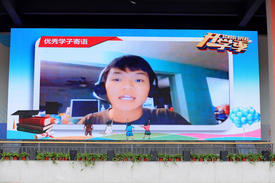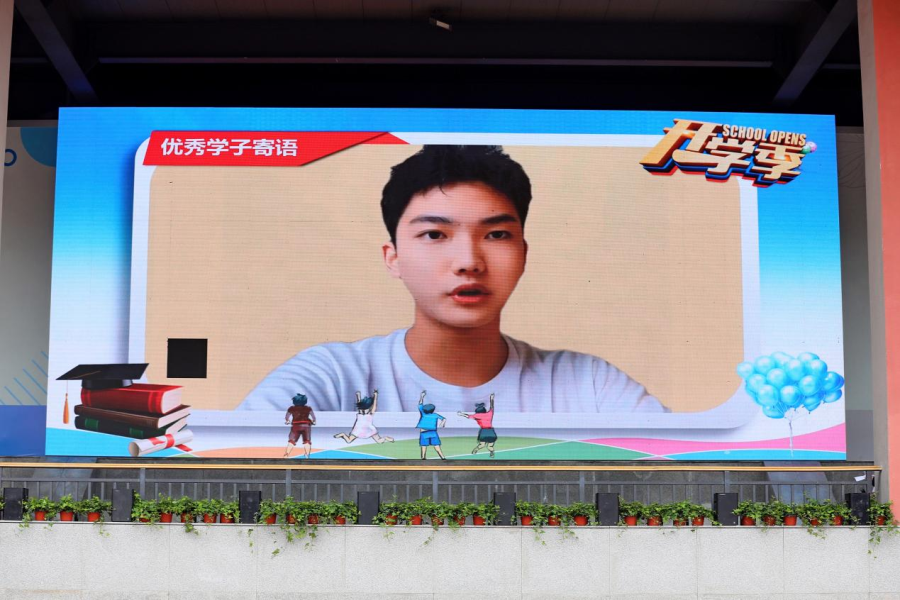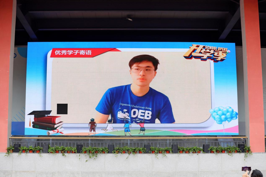 三尺教鞭手中握,沉重职责肩上扛;笔墨飘落育桃李,满心期待盼成才。是老师,带领我们翱翔在知识的广宇;是老师,引领我们走向成功的彼岸。那就让我们带着老师的期望,踏浪前行,书就青春的篇章。高中部赵荣老师,初中部张柔老师,高中部同学余景颢,初中部钟雪婧妍同学为全校同学带来新学年寄语。
