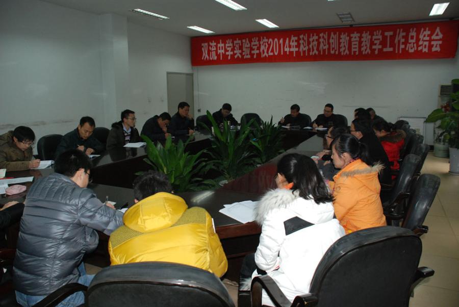 2014年12月25日,双流中学实验学校年度科技科创特色教育工作总结会在三会议室召开,高校长、张校长、周主任及全体科创班部分任课教师、科技辅导员30余人参加了会议。