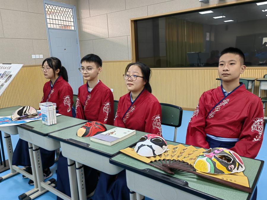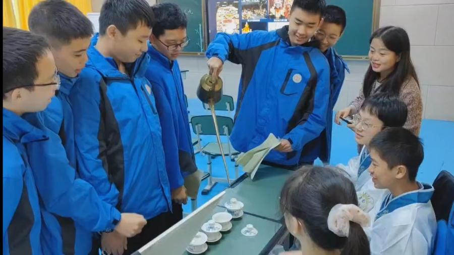 整堂课围绕地方文化奇妙游、舌尖上的成都、极为兴盛的老茶馆、历史悠久的川剧三大板块展开。舌尖上的成都中,川菜组同学通过对比豆腐的不同烹饪手法,带领大家体验成都传统调料和川菜制作,了解川菜特点,并从区域的角度解释原因。极为兴盛的老茶馆板块,学生现场表演长嘴茶壶,迎来了阵阵喝彩,通过茶文化小组同学展示长嘴功夫茶,邀请同学体验,感受非遗的魅力。历史悠久的川剧板块,川剧小组为大家介绍川剧脸谱人物形象后,带领大家沉浸式体验川剧的韵味,学生经历提出问题分析问题的过程,增强学生的地理实践力,体现新课标理念。