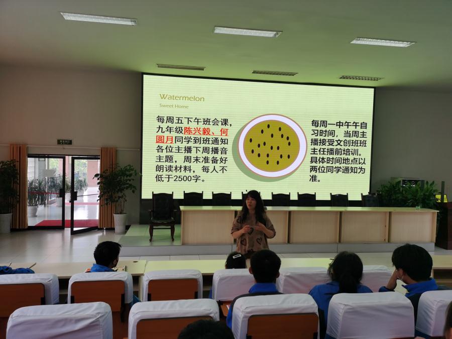 最后,孙主任肯定了“悦读时光”课题组在上一学年工作中的辛勤付出,培养了一批热爱播音的“小主播”们,感谢八九年级的同学师生的鼎力支持。他希望同学们在校园广播这个大舞台上,一路奔跑、一路感悟、一路收获、一路成长······(图文来自悦读时光课题组、文创班备课组 撰稿人:谢娟 审核人:孙久木 )