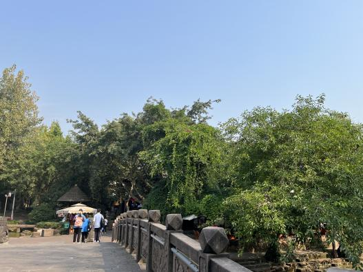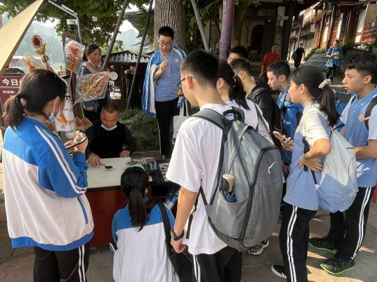 上午九点钟,经过1个小时的车程踩点师生陆续到达景区停车场,跨学科课题组成员交代好注意事项后各班学生在指导教师的带领下,前往本次外出踩点活动的地点——黄龙溪古镇。进入卡口时,踩点学生出示提前打印好的“通行证”,快速有效的进入了景区。