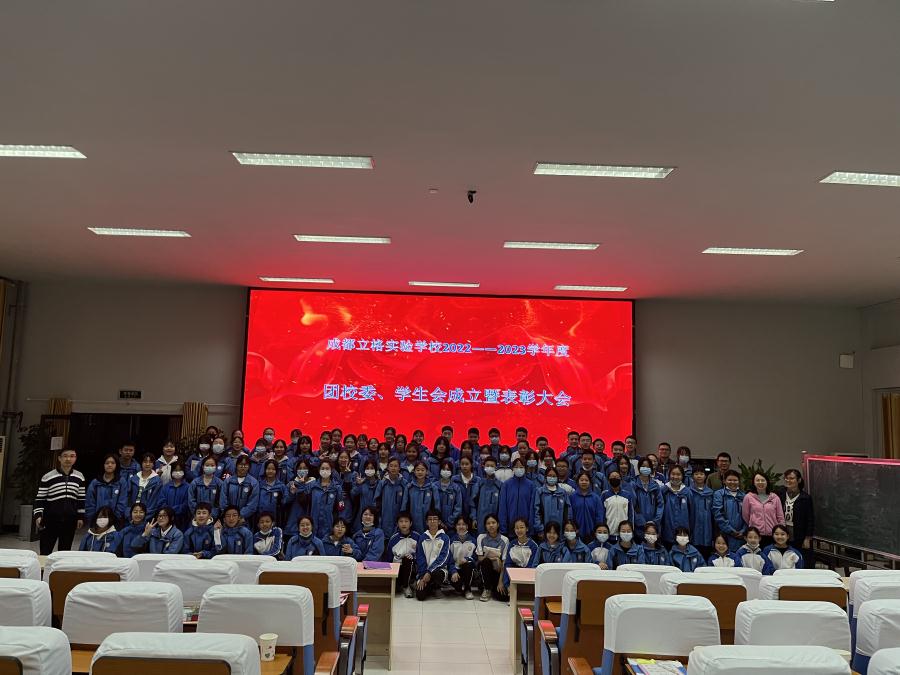 成都立格实验学校团校委、学生会于2022年10月27日(第九周周四)下午18:00,在学术演讲厅召开团校委学生会成立暨表彰大会,到会的各位领导、老师,他们分别是:成都立格实验学校德育处王敏蓉主任、共青团成都立格实验学校委员会书记王俊老师、成都立格实验学校德育处唐纯萍老师、谢华老师、旷勇老师、彭钰老师。金秋十月,硕果飘香,在这青春激扬、不断奋斗的时节里,我们齐聚一堂,共同见证成都立格实验学校2022——2023学年度团校委、学生会的成立暨表彰大会。