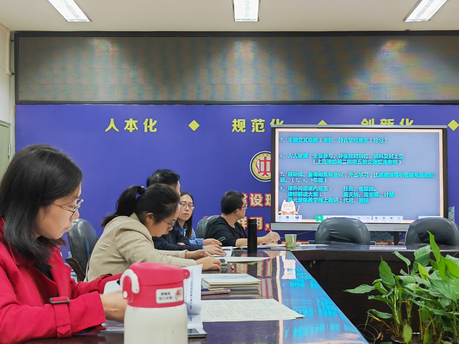 利用本次教研会机会,组长代君和谭虹涛老师对英语组后期工作做出了具体安排,包括英语活动月、英语能力竞赛、“希望之星”演讲比赛、人人献课、半期各年级交叉命题、“课外阅读、课内规范”赛课、新课标解读、单元整体解读线上教研及为20周年校庆准备资料等。