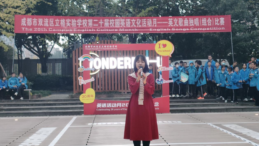 2022年11月15日下午,成都市双流区立格实验学校迎来了第二十届校园英语文化活动月。英语歌唱比赛在英语小广场隆重举行。