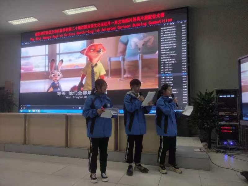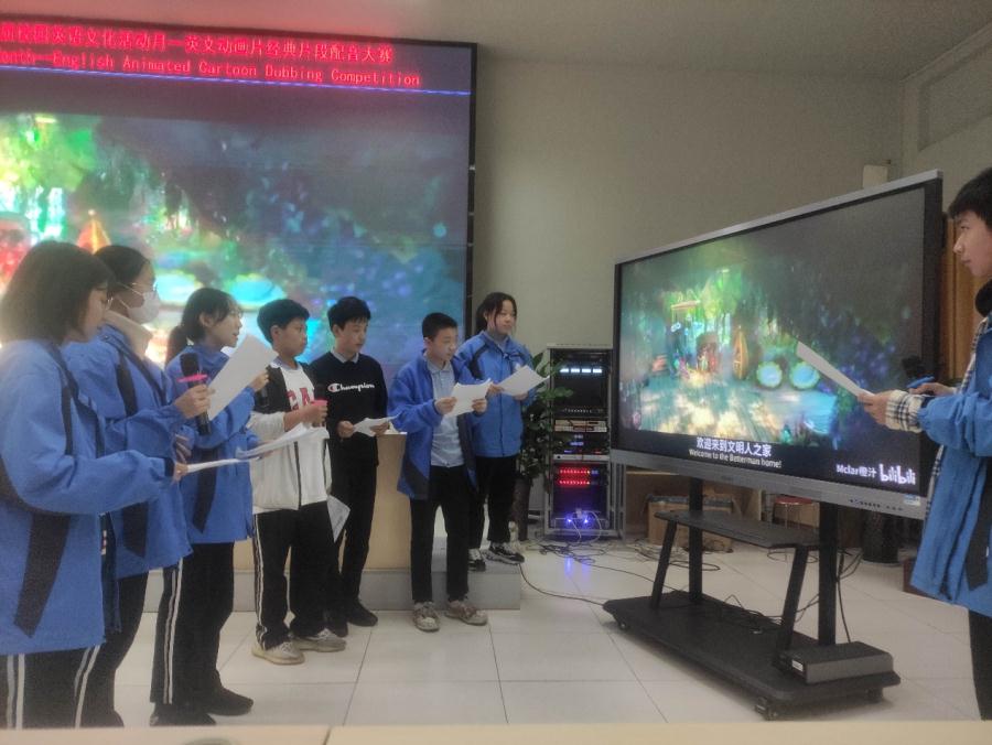 2022年11月22日星期二下午,来自八年级20个班的同学们在我校学术厅进行了一场别开生面的英语动画片配音比赛。本次比赛由学生自主选取3分钟的动画片段进行英语配音。《神偷奶爸》、《疯狂原始人》、《蓝精灵》、《头脑特工队》等经典动画片经各班参赛队员配音演绎后,完全不失“原汁原味”,共同带领现场观众领略了英语配音的魅力和乐趣。