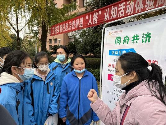 周四下午,在太阳门处,举行了健全人格认知体验活动。认知体验活动由六个小活动构成:单脚汽车、传话筒、滚雪球、气象万千、心有千千结、同舟共济。这样形式多样有趣的活动,吸引了七年级参与同学的兴趣,他们在团结协作中,想办法解决问题,在活动中不断丰富自我的认识。