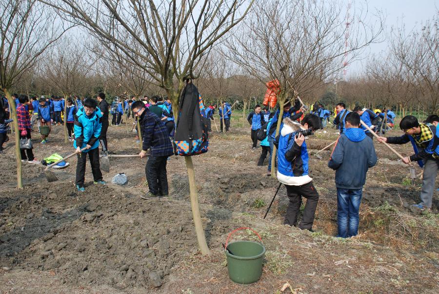 由于出发前指导老师对学生进行了详细的分工,每位学生都明确自己的任务(有除草翻地的、有领种栽种的、有拉绳打窝的、有取水浇水的),所以一到基地学生们立即就能各就各位的着手自己的工作。但在这些流程中,翻地学生的困难最大,坚硬的泥土考验着同学们的意志,也挑战着同学们的极限。有的学生使出了九牛二虎之力也只能翻动地的一点表皮,只能望土兴叹,但有一部分学生却是行家里手,锄头在他们手里上下翻飞,再坚硬的泥土也配合着他们的节奏,开始服软了。在这部分行家里手的带动下,越来越多的同学学会了翻地,他们彼此配合,一批接着一批征服土地,用一个半小时左右的时间,一片松软的土地呈现在了同学们面前,胜利已经在望了。