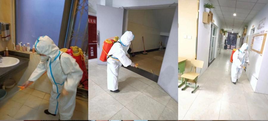 在消毒过程中严格遵守卫生消杀标准规范操作,对学校的校园设施、教室、洗手池、厕所、办公室等公共区域进行消毒消杀,全面切断校园病毒传播源,确保校园安全。